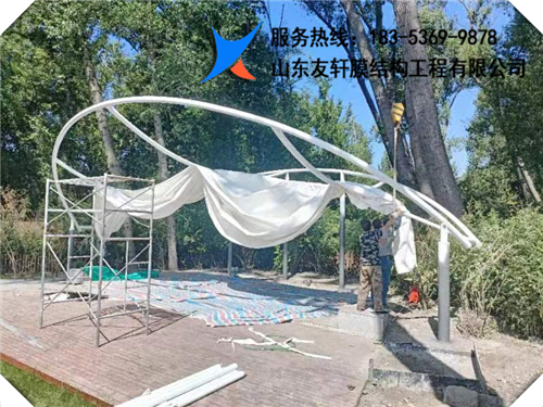 工地名稱:山西省太原市晉源區(qū)晉祠公園餐廳遮陽傘 膜材:國產(chǎn)PVDF白色膜材 平方數(shù):126平方